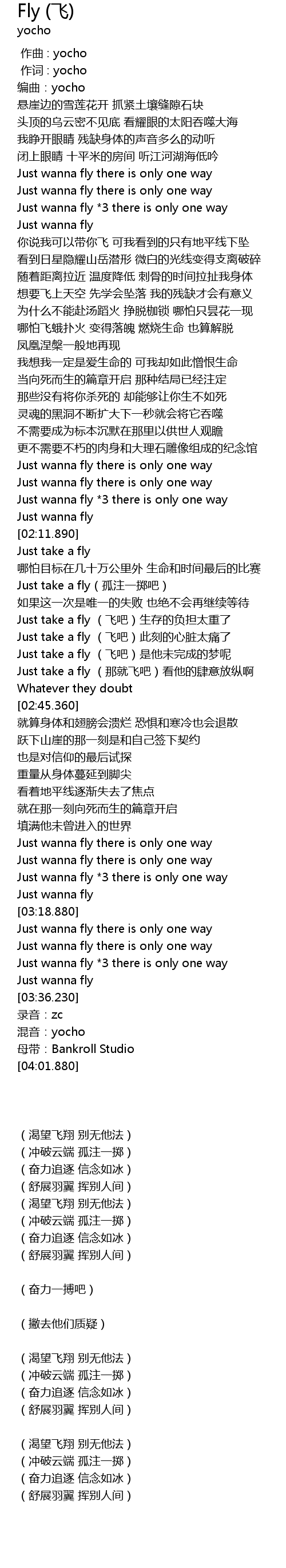 | [02:30.340] | Just take a fly gū zhù yī zhì ba |