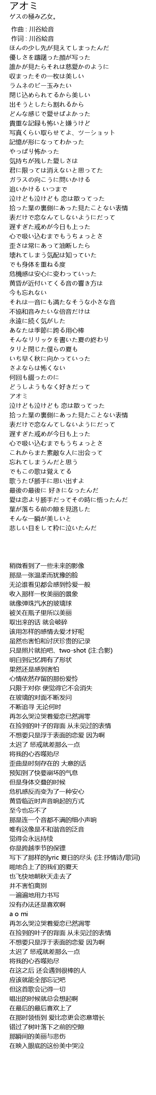 | [01:57.36] | 写下了那样的lyric 夏日的尽头 (注:抒情诗/歌词) |