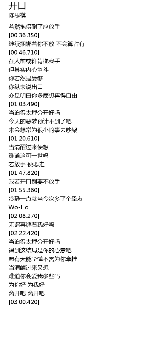 | [02:53.800] | lí kāi ba lí kāi ba |