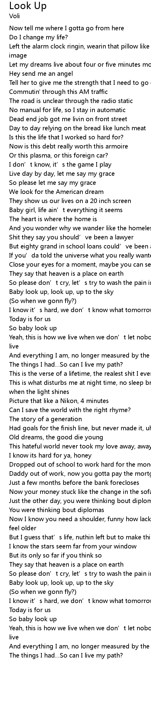 | [01:47.376] | Baby look up, look up, up to the sky |