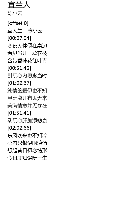 | [00:00.48] | 宜人兰 - 陈小云 |