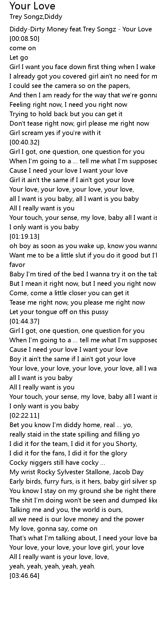 | [00:-01.00] | DiddyDirty Money feat. Trey Songz Your Love |