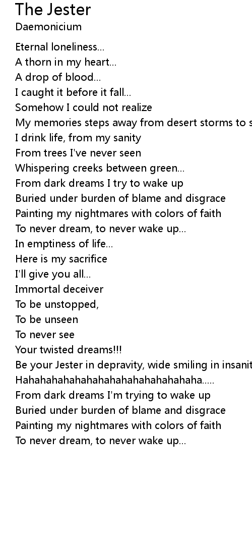 Be your Jester in depravity, wide smiling in insanity [x2] |