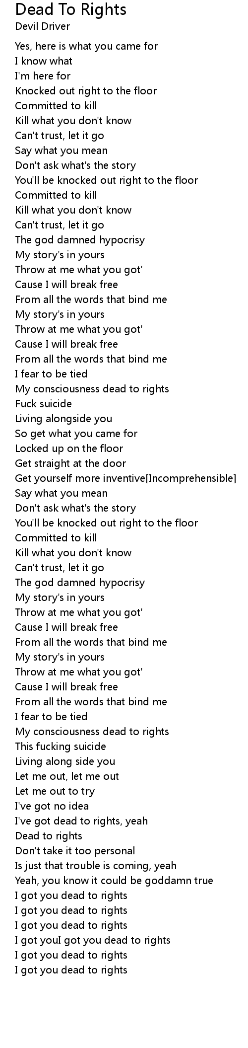 Dead To Rights 歌词