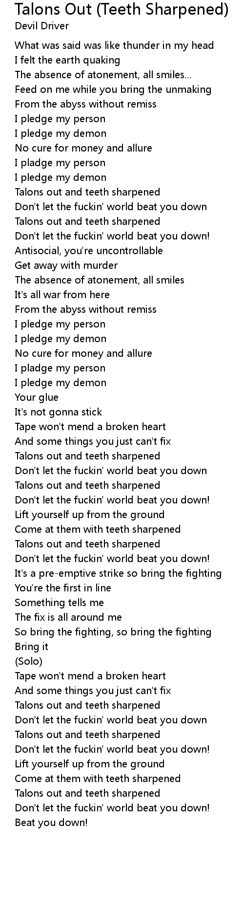 Talons Out (Teeth Sharpened) 歌词