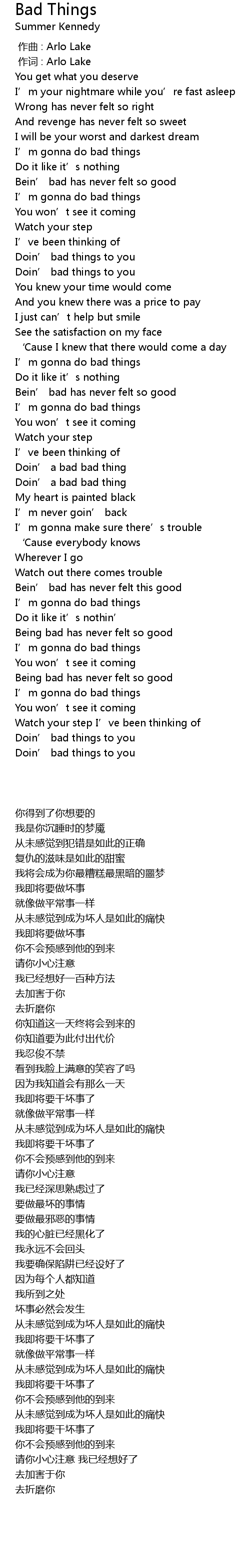 | 歌曲 | Bad Things |