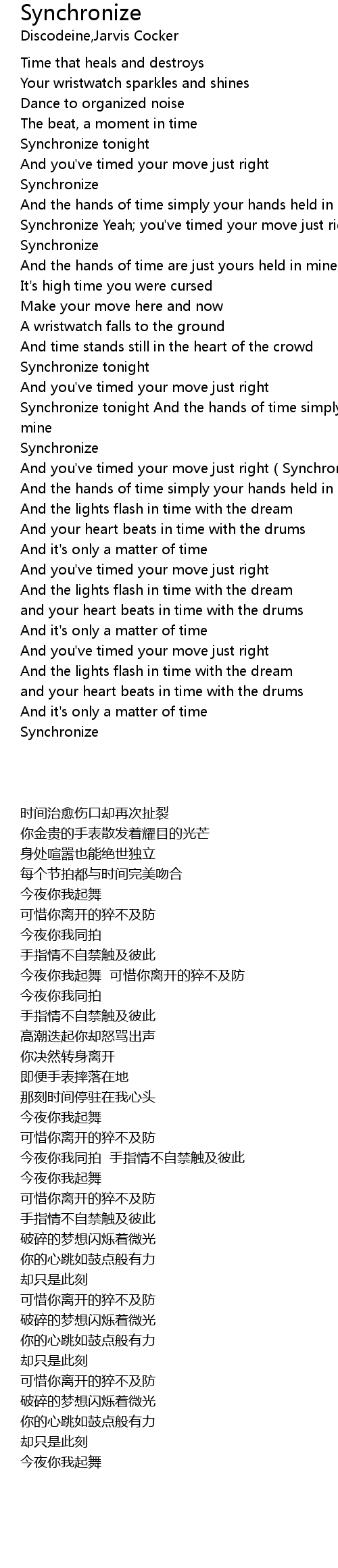 | [03:12.99] | And you've timed your move just right(Synchronize) |
