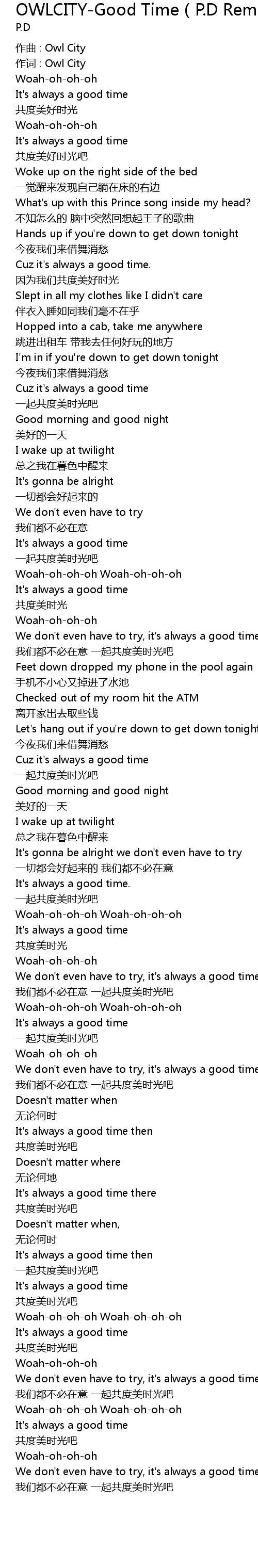 | 歌曲 | OWLCITY-Good Time(P.D Remix) |
