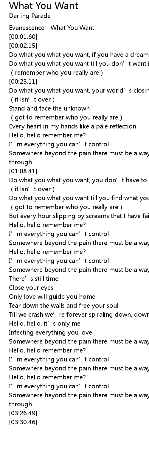 | [01:18.03] | Do what you what you want till you find what you' re looking for |