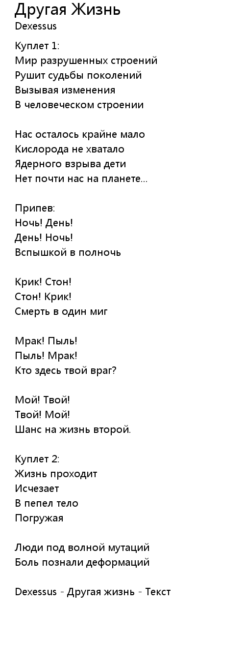 | Dexessus - Другая жизнь - Текст |