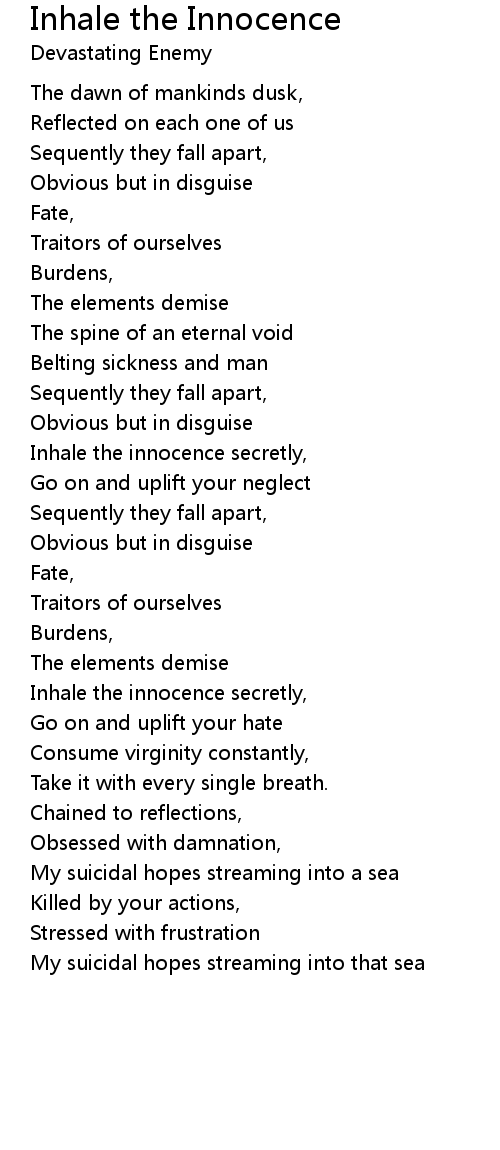 Inhale the innocence secretly, |