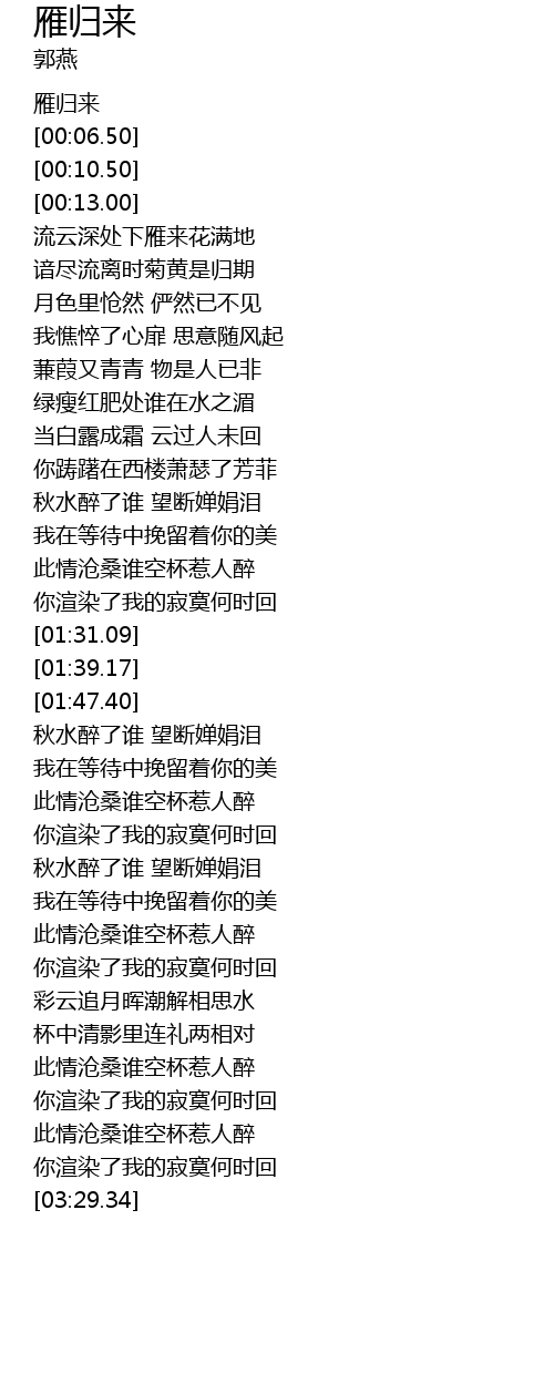 | [00:52.91] | 当白露成霜 云过人未回 |