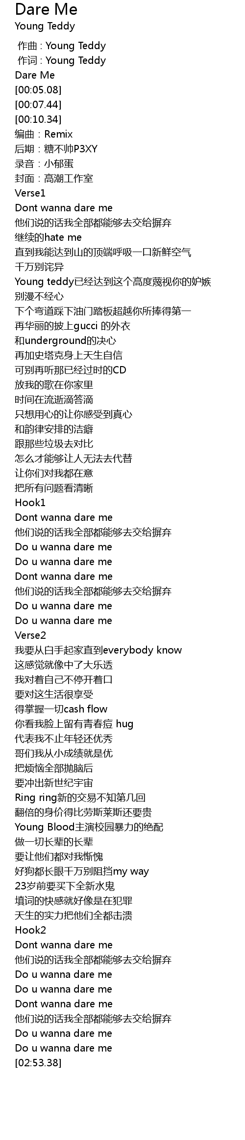 | [00:00.000] | zuò qǔ : Young Teddy |