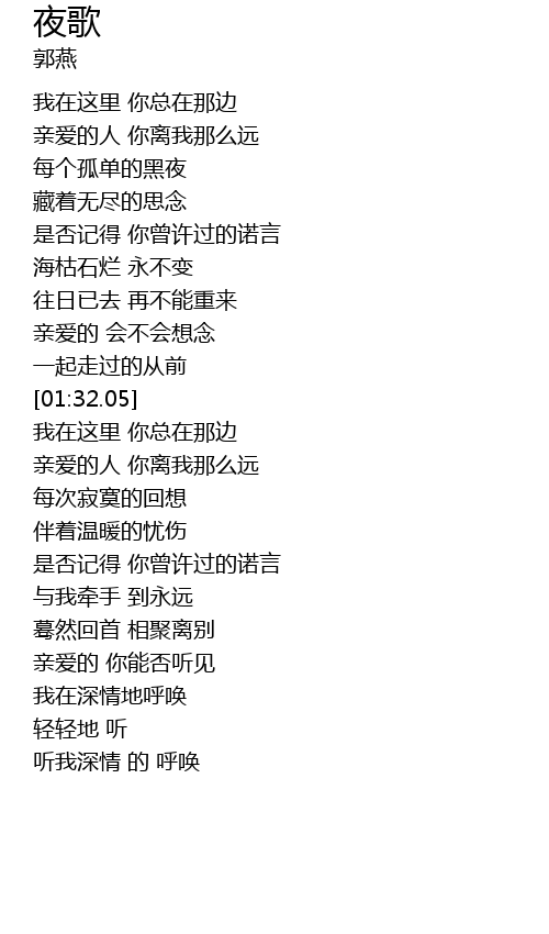 | [02:55.58] | 我在深情地呼唤 |
