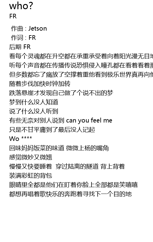 | [00:01.000] | 作词 : FR |