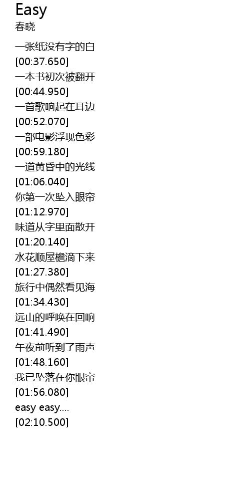 | [00:34.470] | 一张纸没有字的白 |