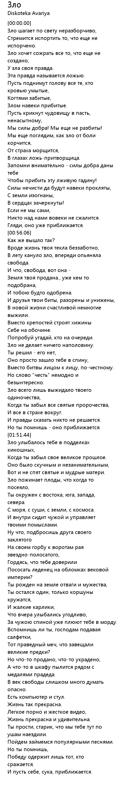 Зло 歌词
