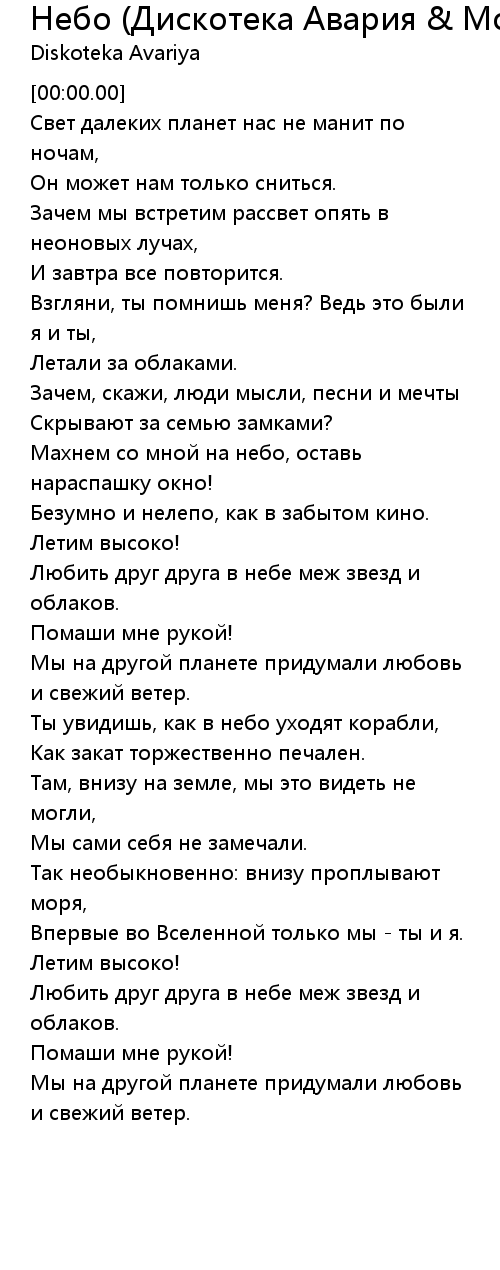 Небо (Дискотека Авария & Моральный Кодекс) 歌词