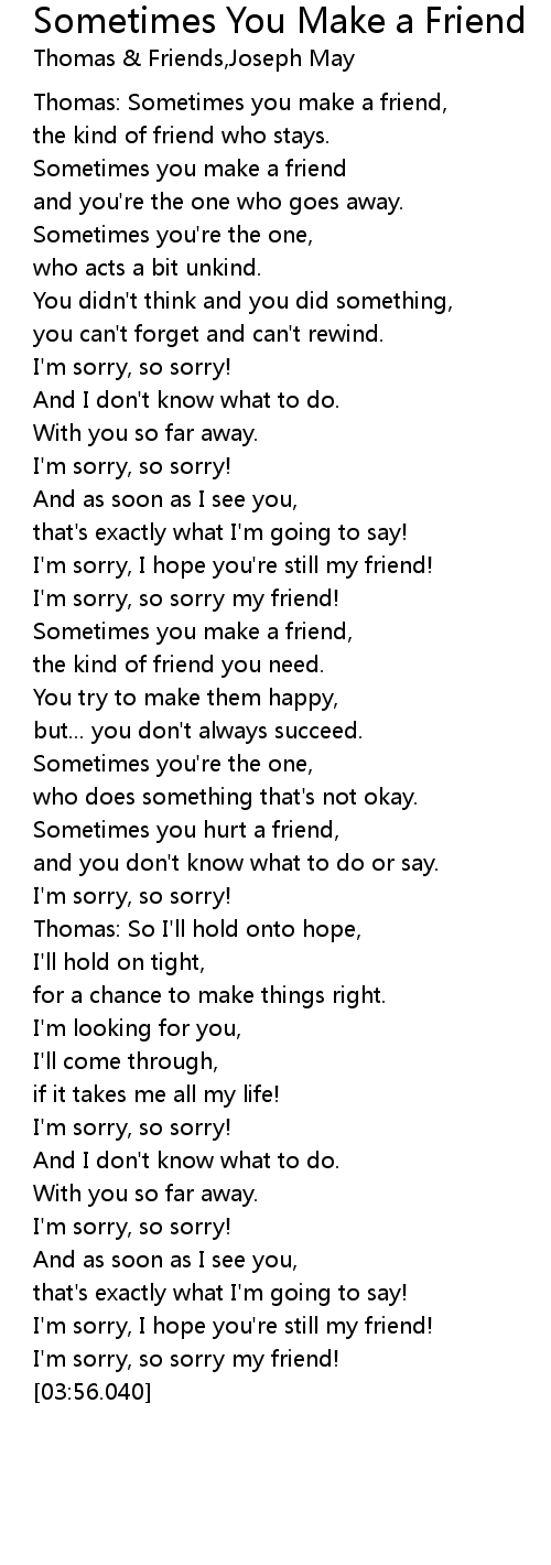 Thomas: Sometimes you make a friend, |