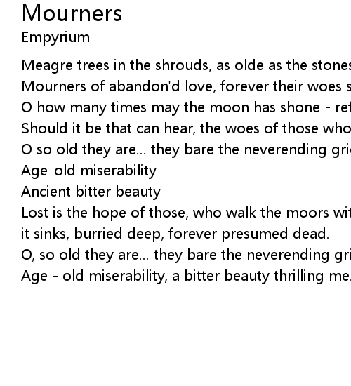 Lost is the hope of those, who walk the moors with pain in heart. ...and all joy it sinks, burried deep, forever presumed dead. |