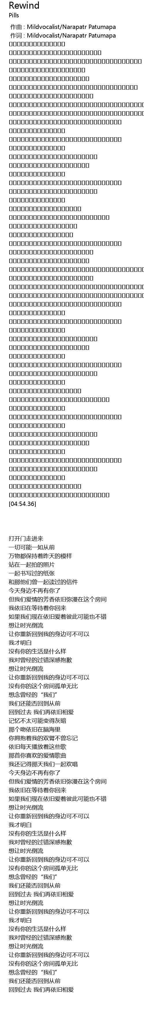| [00:01.000] | 作词 : Mildvocalist/Narapatr Patumapa |