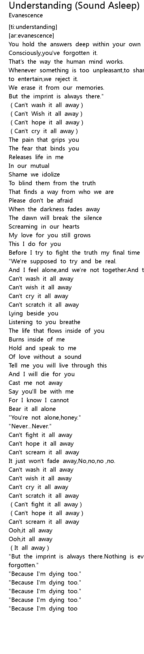 | [04:25.850] | It just won' t fade away, No, no, no , no. |