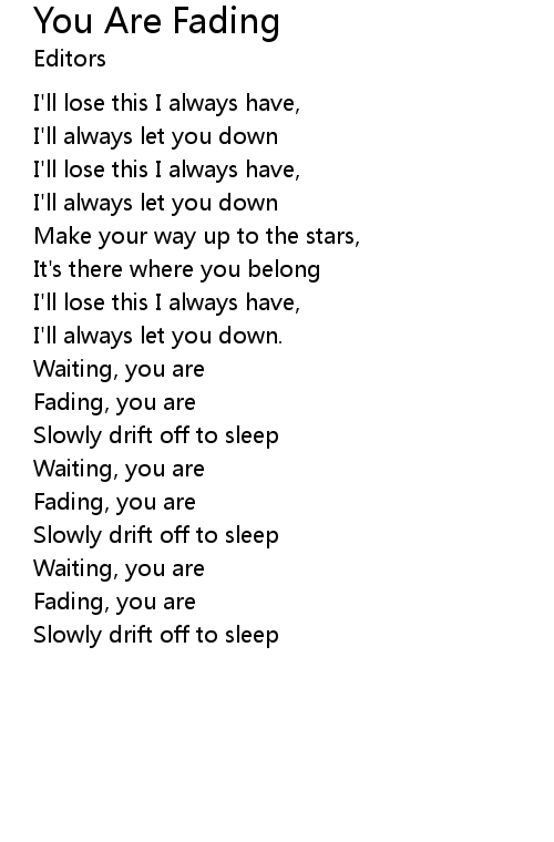 | 歌曲 | You Are Fading |