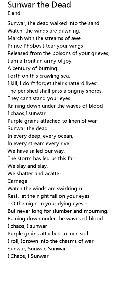 Sunwar the Dead 歌词