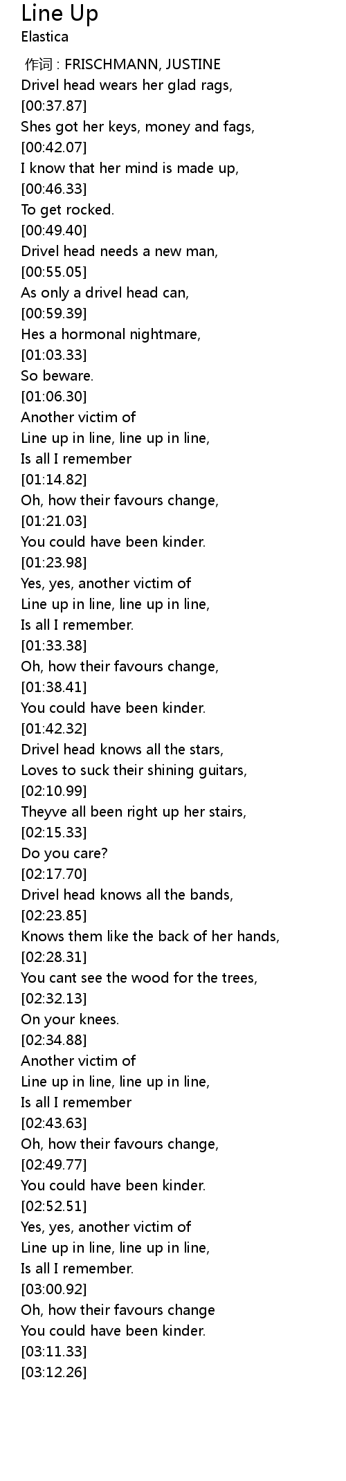 | [02:56.89] | Line up in line, line up in line, |
