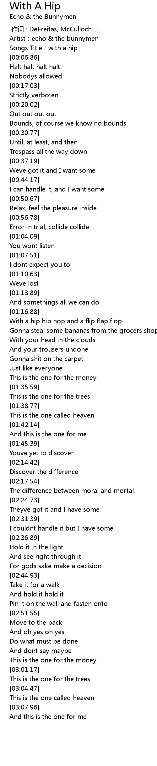 | [00:03.36] | Songs Title: with a hip |