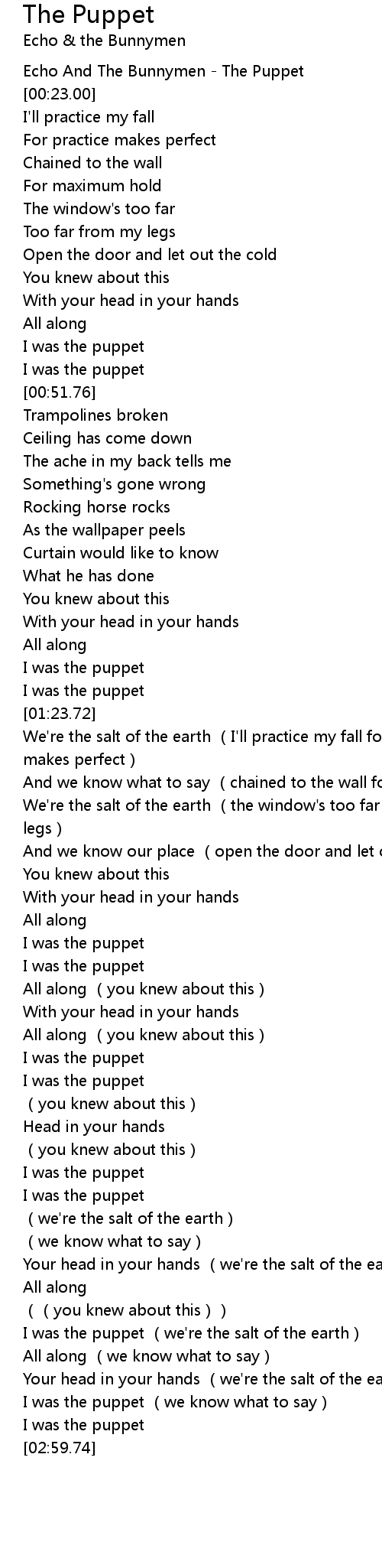 | [00:02.00] | Echo And The Bunnymen The Puppet |