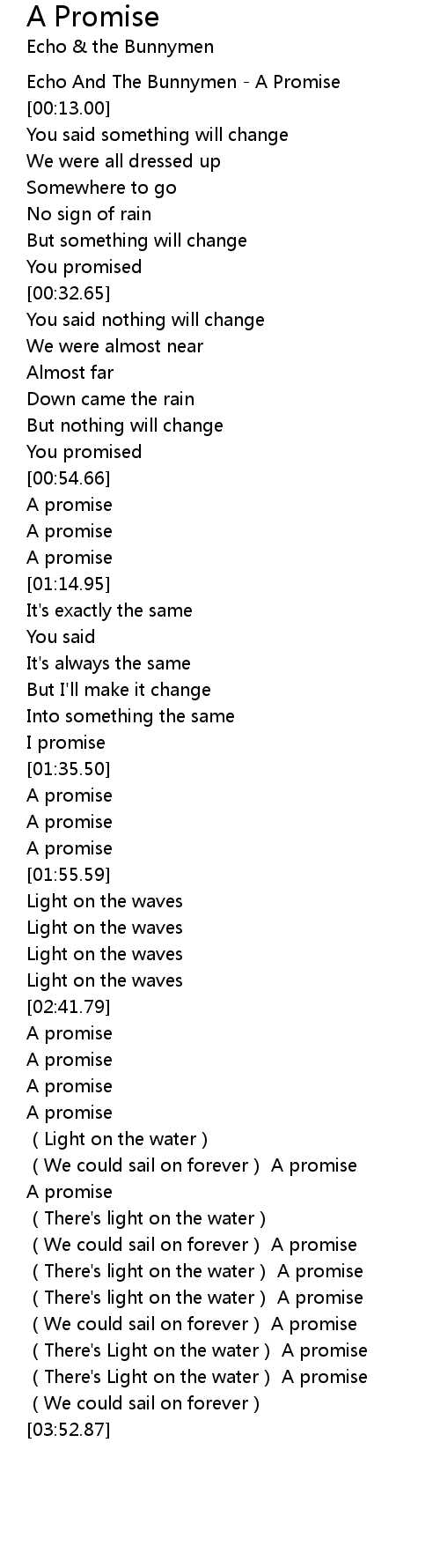 | [00:01.00] | Echo And The Bunnymen A Promise |
