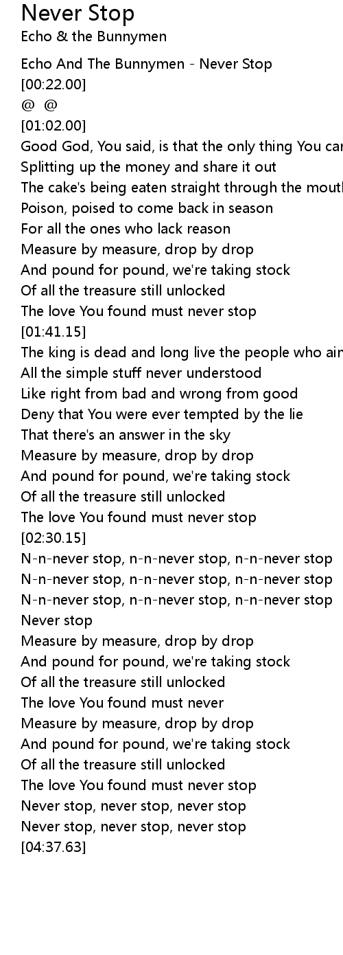 N-n-never stop, n-n-never stop, n-n-never stop |