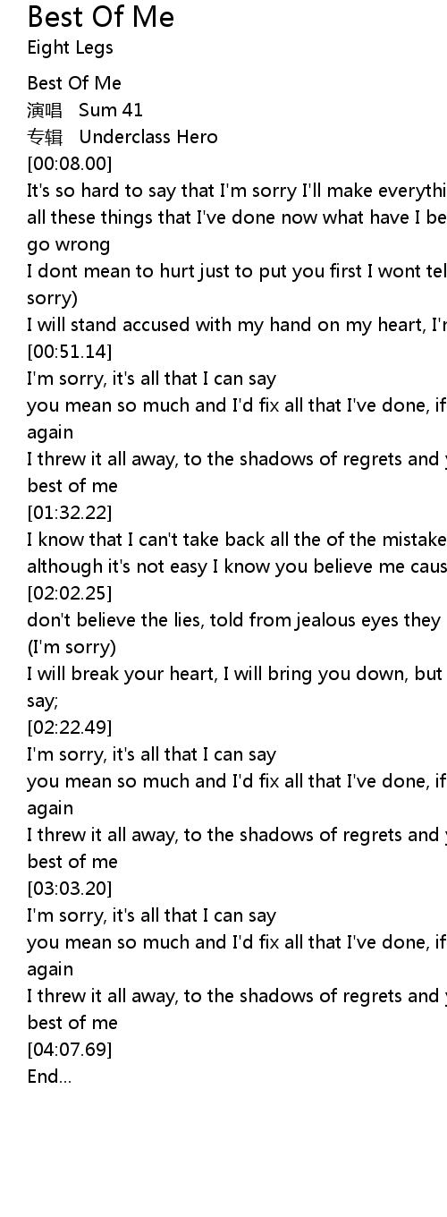 | [02:43.91] | I threw it all away, to the shadows of regrets and you would have the best of me |