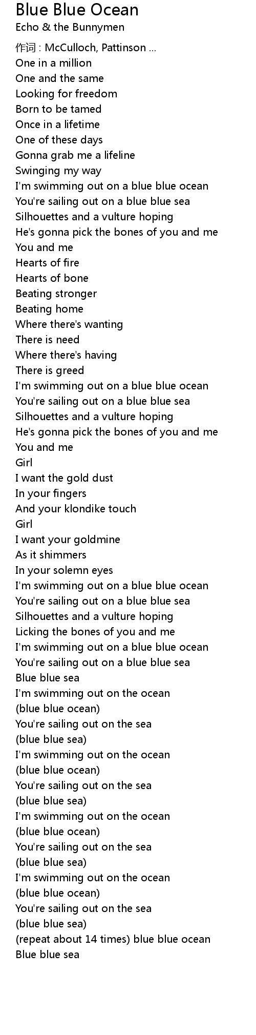 | (repeat about 14 times) blue blue ocean | |