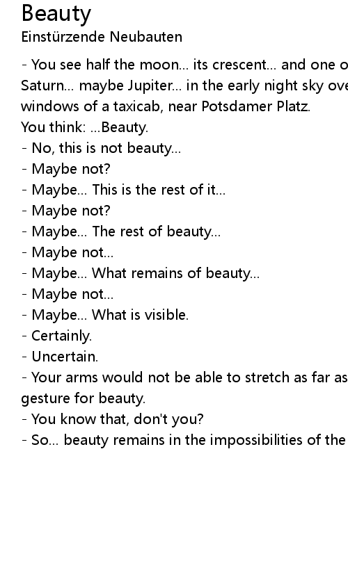 - So... beauty remains in the impossibilities of the body. |
