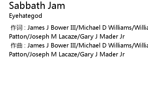| [00:00.000] | 作曲 : James J Bower III/Michael D Williams/William B Patton/Joseph M Lacaze/Gary J Mader Jr |