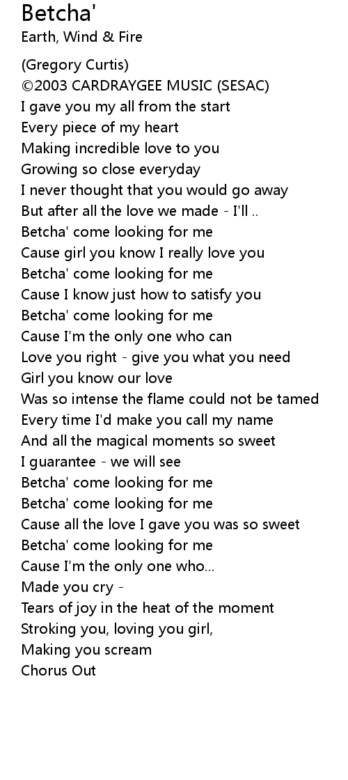 | Betcha' come looking for me | |
