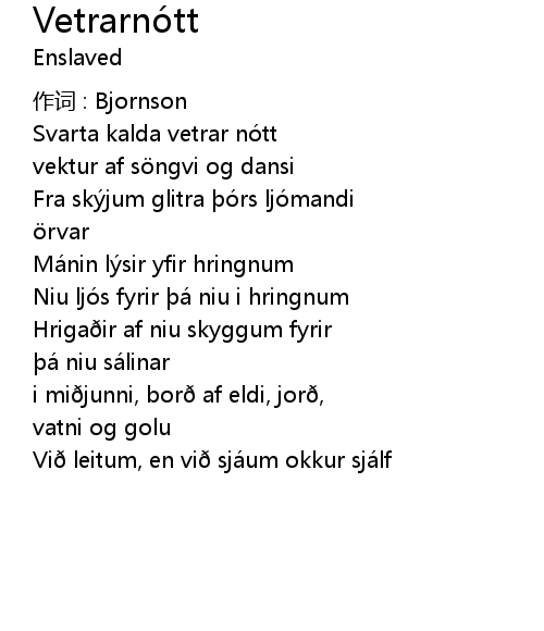 | 歌曲 | Vetrarnótt |