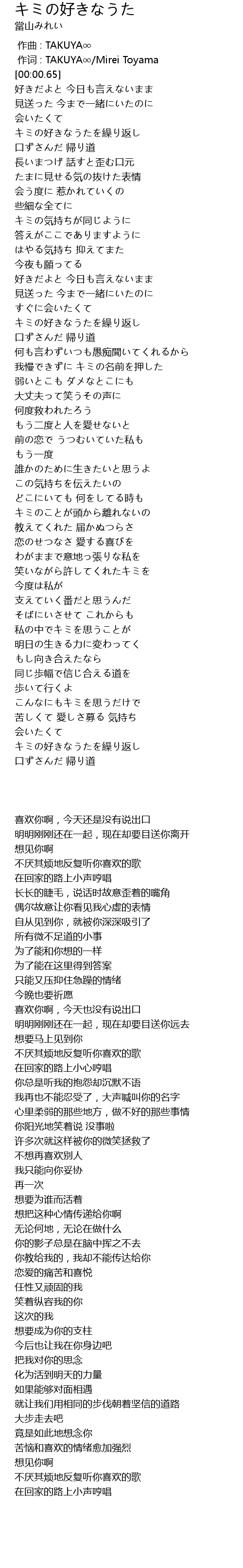 | [00:00.021] | zuo ci : TAKUYA Mirei Toyama |