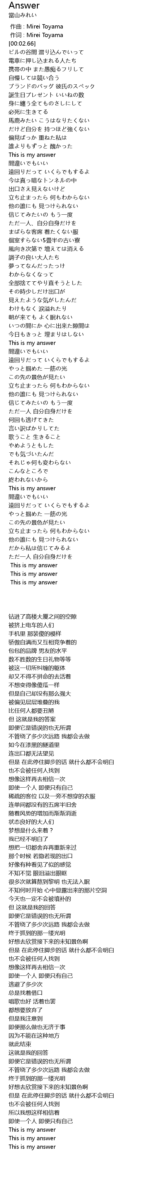 | [00:00.000] | zuo qu : Mirei Toyama |