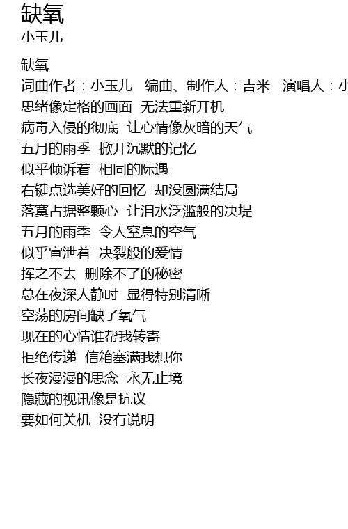 | 词曲作者:小玉儿 编曲、制作人:吉米 演唱人:小玉儿 | |