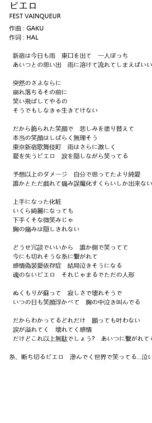 | 歌曲 | ピエロ |