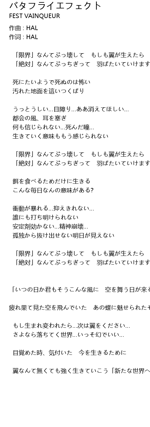| 歌曲 | バタフライエフェクト |