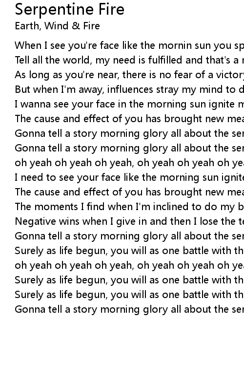 Gonna tell a story morning glory all about the serpentine fire |