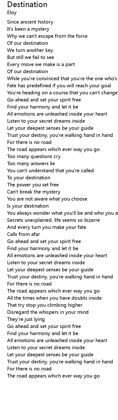 Trust your destiny, you're walking hand in hand |