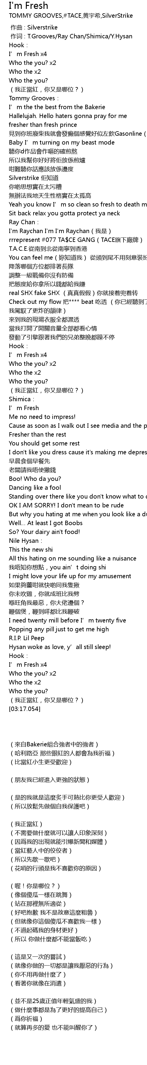 | [02:58.732] | I' m Fresh x4 |