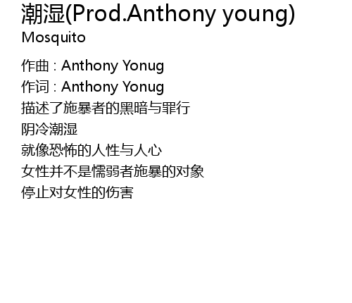 | 作词 : Anthony Yonug | |