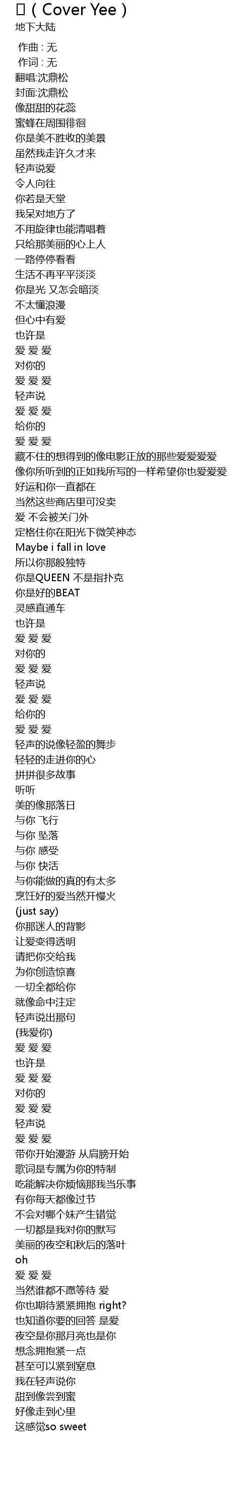 | [00:43.40] | 爱 爱 爱 |