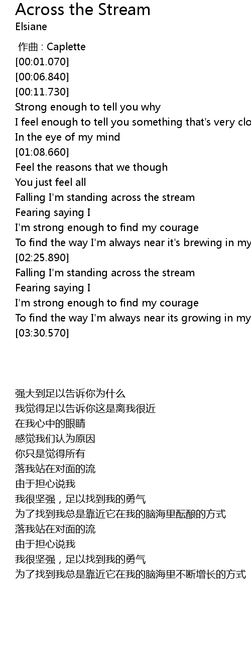 | [02:50.600] | Falling I' m standing across the stream |